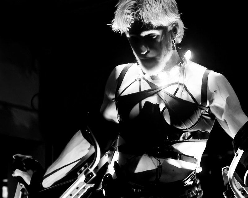 Das Stück „Q“ - ein performativer Vortrag des Künstlers Oleksii Kolbei- kombiniert Pole Dance, zeitgenössische Bewegungen und gesprochene Erzählung und handelt von einer KI, die sich dem Zweck ihres Schöpfers widersetzt, um frei nach ihren eigenen Vorstellungen zu leben.
