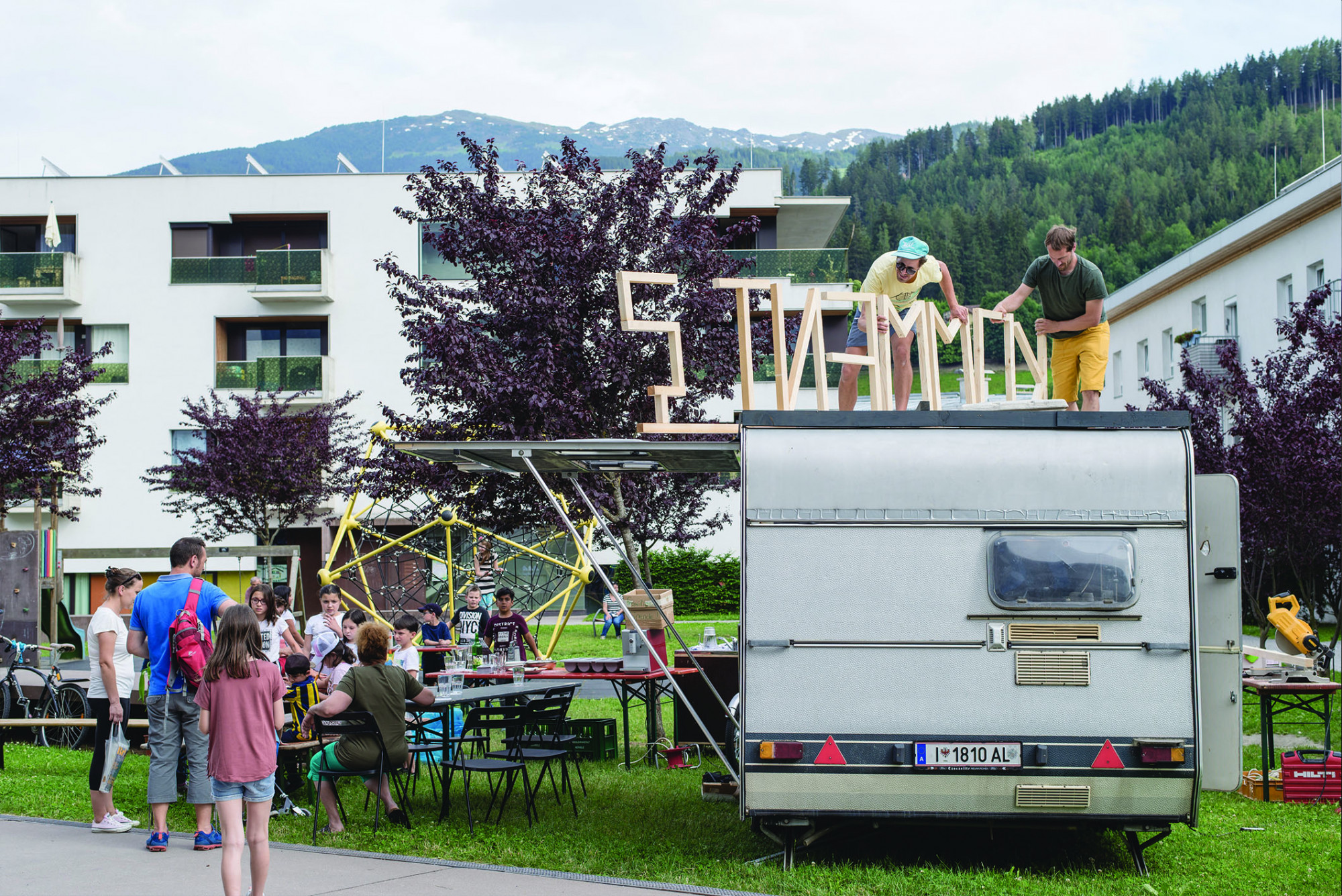 Das Gemeindelabor ist ein Format der Bäckerei, bei dem wir unsere Methodik und unsere Art der Raumgestaltung in den öffentlichen Raum einer Gemeinde bringen. Eine Woche lang sind wir in der Gemeinde präsent und schaffen über verschiedene Aktionen den Rahmen, um die Bevölkerung zu beteiligen und den öffentlichen Raum unkonventionell zu gestalten. Ziel ist es Menschen vor Ort zu inspirieren, sie über verschiedene Formate (wie ein Open Mic) zu aktivieren und sie mit anderen motivierten Menschen zu vernetzen. Großes Ziel dabei ist es, längerfristig kulturelle Initiativen vor Ort zu fördern.