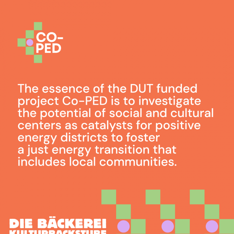 The Innsbruck lab addresses the urgent need for inclusive governance and innovative financial models in energy communities. By embedding the energy transition in a cultural venue that already hosts 200+ events annually and reaches 25,000 people, Co-PED tests how cultural infrastructures can amplify participation, build trust, and support democratic decision-making. Results from Innsbruck feed into cross-European research, policy recommendations, and toolkits to scale positive energy districts across diverse contexts.